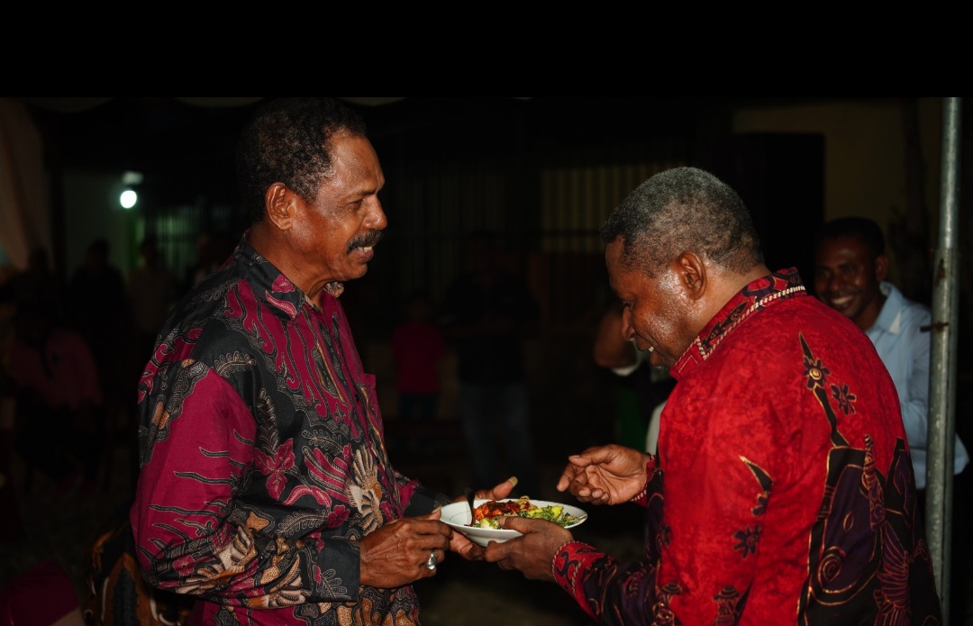 Kompak mengenakan batik merah, Wakil Bupati Waropen, Yowel Boari, menerima potongan nasi tumpeng dari Bupati Waropen, Fransiscus Xaverius Mote, usai ibadah syukur berlangsung. (Ft: TIM) […]