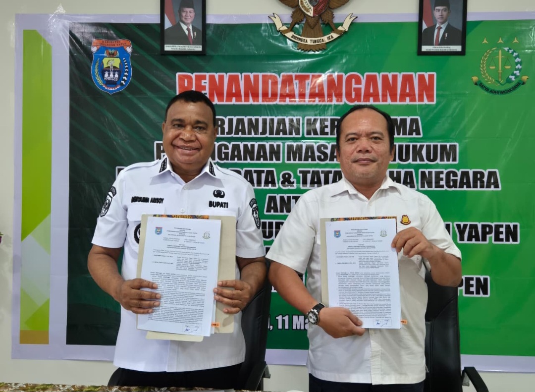 Kajari Kepulauan Yapen (kanan) dan Bupati Kepulauan Yapen (kiri) menunjukkan dokumen kerja sama usai penandatanganan MoU dan PKS di Aula Kejari Kepulauan Yapen. (Ft: Dok/Humas […]