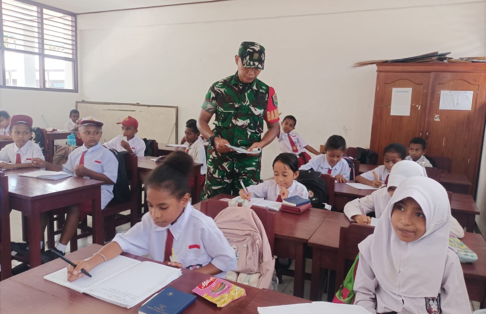 Sementara itu, Wali Kelas 4A, Ibu Lea Noboba, S.Pd, dan Kepala Sekolah, Bapak Lapuardi, S.Pd, menyampaikan apresiasi dan rasa terima kasih kepada Babinsa yang selalu hadir mendampingi para guru dalam mencerdaskan anak-anak di wilayah binaannya.
