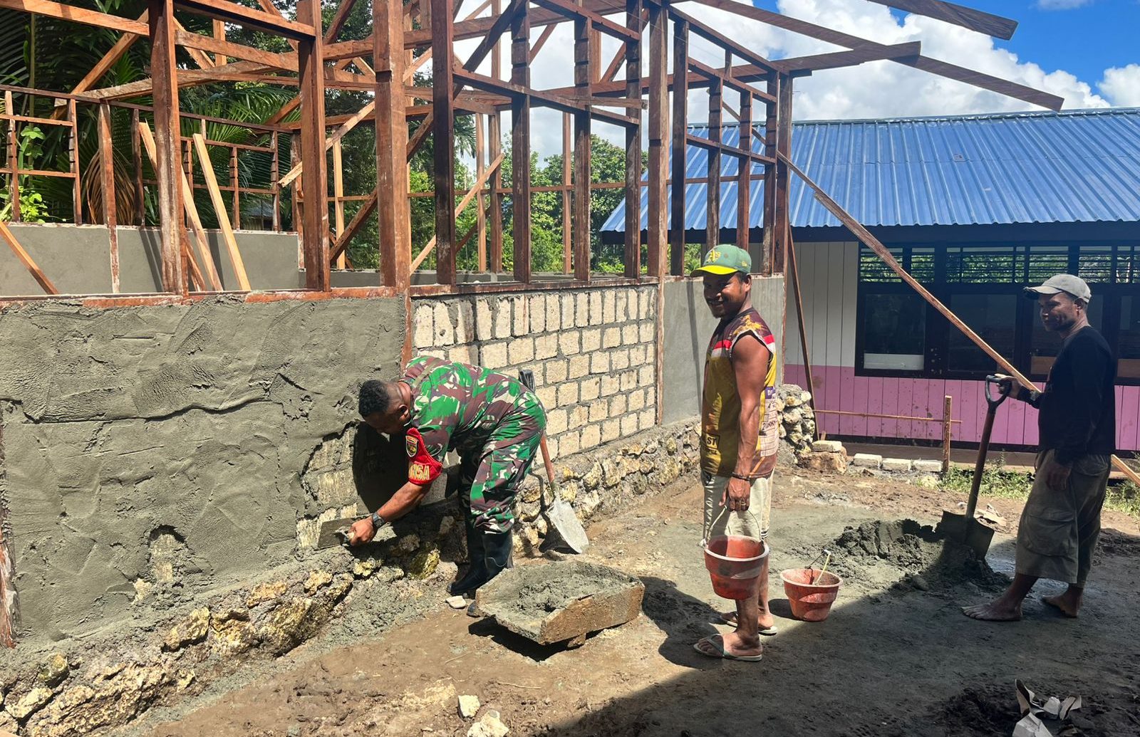 Babinsa Koramil 1709-01/Serui Bantu Bangun Ruang Kelas Baru di SD Mambo
