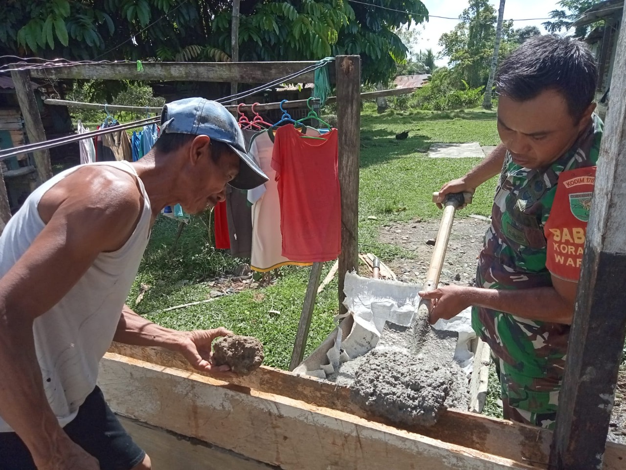 Dengan adanya pembangunan MCK yang dibangun oleh Babinsa bersama warga ini, diharapkan masyarakat bisa hidup sehat, di samping dapat meringankan beban rakyat, kegiatan ini juga untuk menjalin komunikasi sosial dengan masyarakat guna memperkokoh kemanunggalan TNI-Rakyat,” ucap Sertu Yekin.