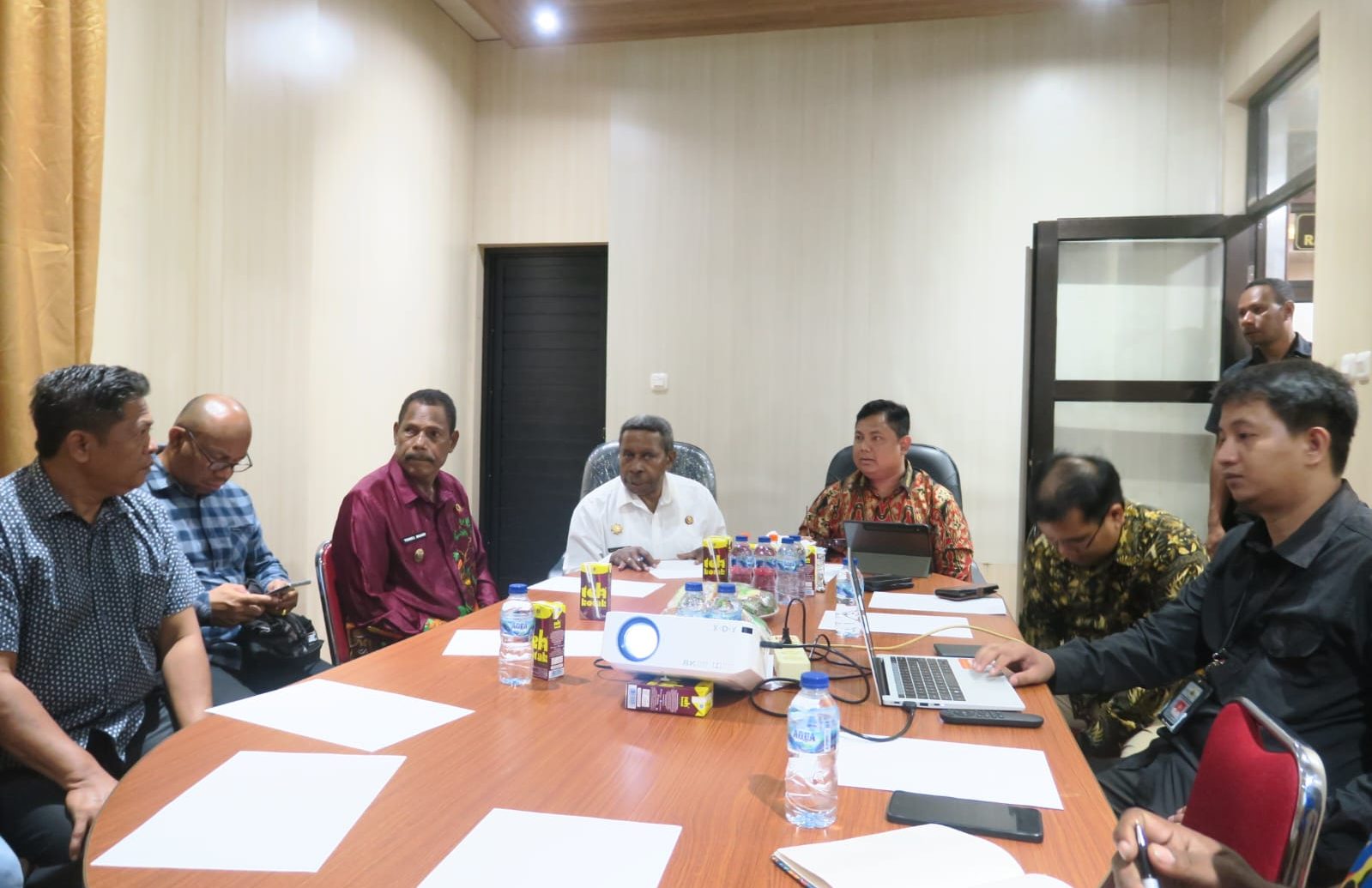 Suasana diskusi antara Pemerintah Kabupaten Waropen dan BPK RI Perwakilan Papua dengan Bupati, Wabup dan para Kepala OPD saat membahas pengelolaan dan pertanggungjawaban keuangan daerah di ruang rapat Bupati. (Ft: Tamrin/mepago.co)