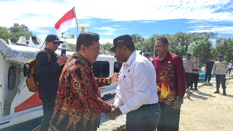 Sebelum memasuki agenda rapat, Bupati Mote didampingi Wakil Bupati, Kepala Inspektorat, dan Kepala Badan Keuangan terlebih dahulu menjemput langsung rombongan BPK RI Perwakilan Papua di Kali Sanggei. Setelah prosesi penyambutan, rombongan bergerak dalam iring-iringan kendaraan menuju Kantor Bupati.