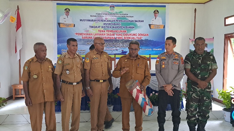 Turut hadir dalam kegiatan tersebut Plt. Kepala Bappeda Mesak Wonatorei, S.Pd, Plt. Kadistrik Waropen Bawah Alfons Wenggi, S.IP, Danramil Waropen Bawah yang diwakili, Kapolsek Waropen Bawah, jajaran ASN distrik, para kepala kampung, Bamuskam, serta unsur terkait lainnya.