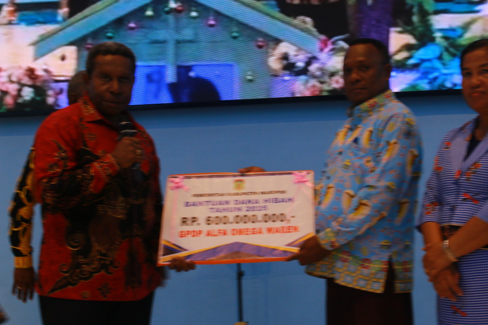 Dalam acara tersebut, Bupati juga menyerahkan bantuan pemerintah untuk menopang dan menguatkan seluruh kegiatan pelayanan serta pembangunan jemaat GPdI Alfa Omega Group Waren.