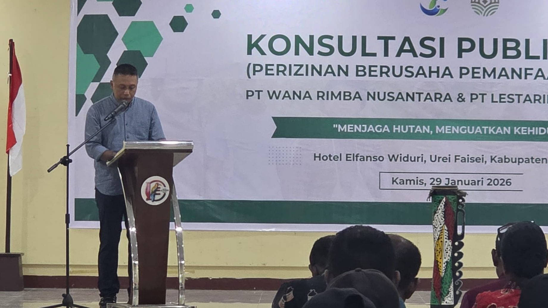 Penegasan tersebut disampaikan Direktur PT WRN dan PT LBP, Th. Puguh Sasetyo, dalam kegiatan konsultasi publik PBPH yang digelar di Aula Hotel Elfanso Widuri, Kabupaten Waropen, Kamis (29/1/2026).