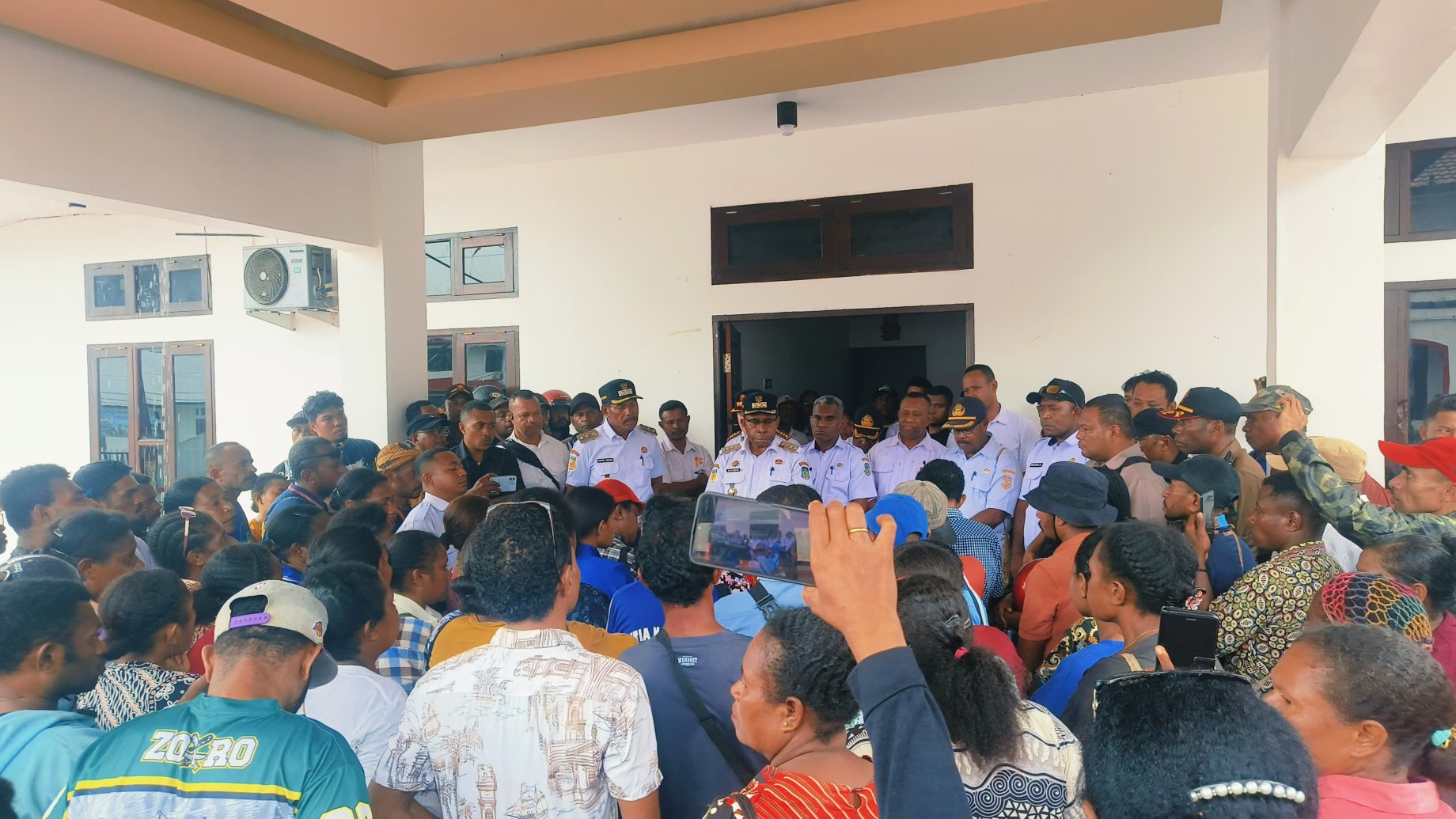 WAROPEN | MEPAGO.CO – Suasana di depan Kantor Bupati Waropen tampak berbeda pada Rabu pagi, 21 Januari 2026. Puluhan warga yang tergabung dalam kelompok tenaga honorer dan P3K mendatangi kantor bupati untuk menyampaikan aspirasi terkait kejelasan nasib serta status kepegawaian mereka.