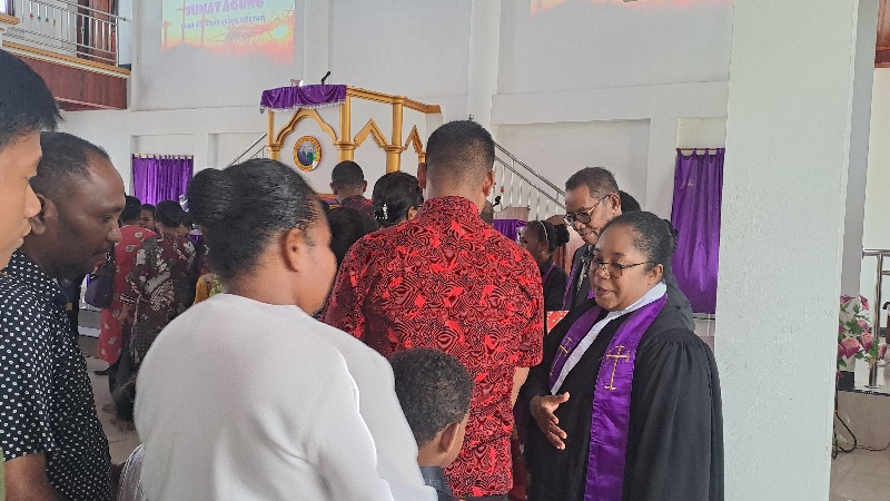 WAROPEN | MEPAGO.CO – Ibadah Jumat Agung dengan tema “Kepedulian Allah dan Penebusan” berlangsung khidmat di GKI Diaspora SP5 Kabupaten Waropen, dipimpin Ketua Jemaat, Pdt. Maria Rumandewai, M.Si.