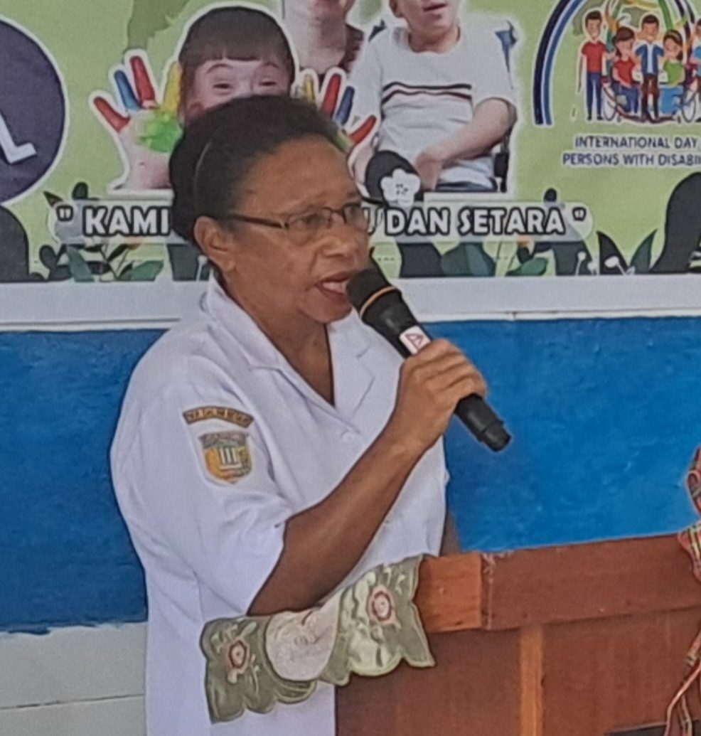 WAROPEN | MEPAGO.CO – Kepala Dinas Pendidikan dan Kebudayaan (P dan K) Kabupaten Waropen, Minarni Aronggear, S.Pd., M.Pd., menyampaikan apresiasi mendalam kepada para guru di SLB Negeri Uri Waren yang dengan setia melayani anak-anak berkebutuhan khusus. Hal tersebut disampaikannya dalam sambutan pada kegiatan Pelayanan Kasih Akhir Tahun yang digelar oleh PWKI Papua Kabupaten Waropen bersama DP3AKD bersamaan peringatan Hari Disabikitas Internasional, Rabu (3/12/2025), di sekolah setempat.