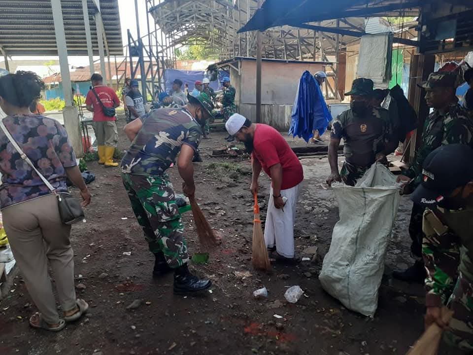 Kodim 1709/Yawa Gelar Karya Bakti Serentak, Pasar Bersih & Kamtibmas Kondusif