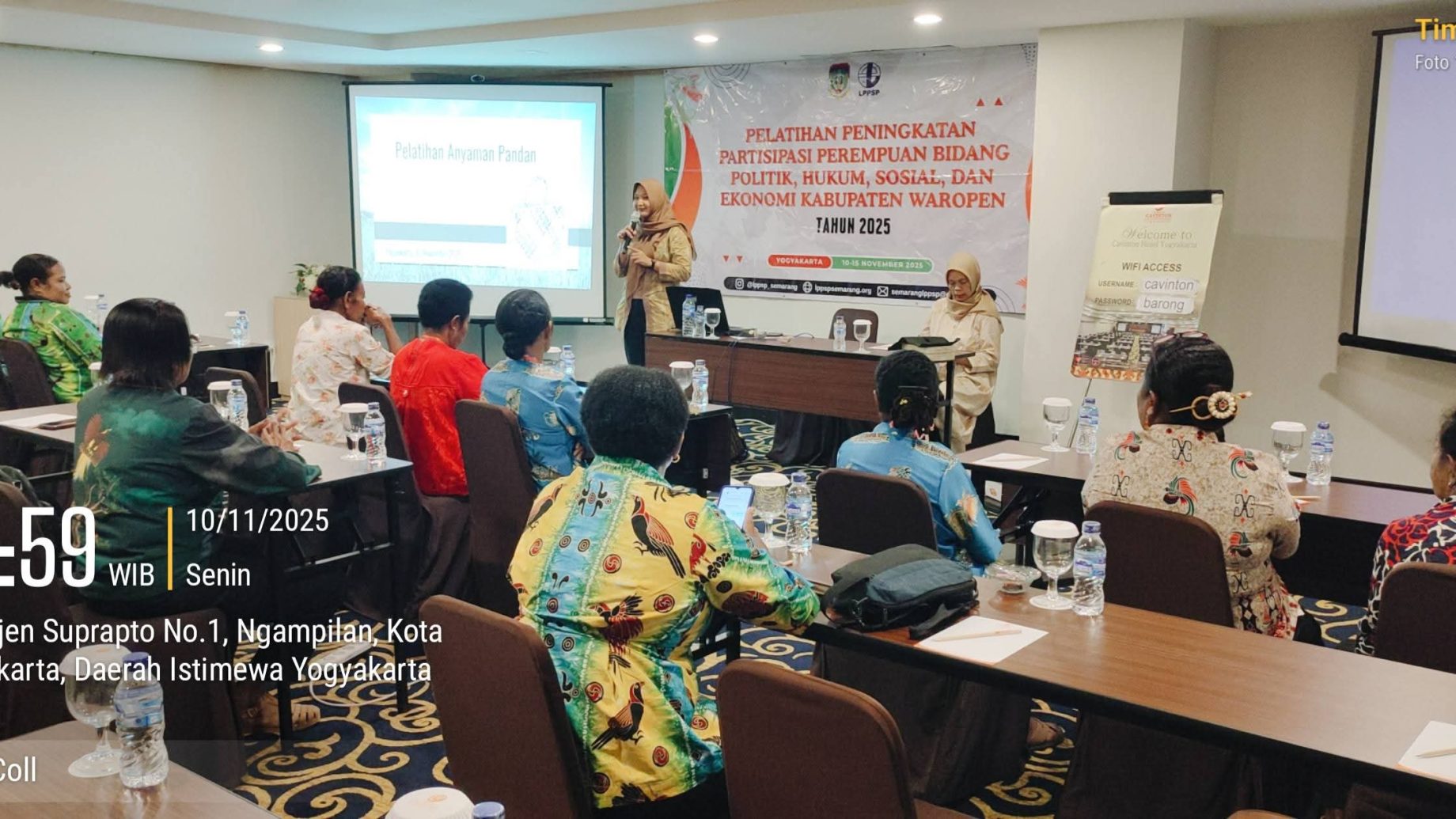Kepala Dinas P3AKB Kabupaten Waropen, Selviana Imbiri, menjelaskan melalui pesan WhatsApp kepada media ini bahwa kegiatan tersebut bertujuan untuk meningkatkan kemampuan, kreativitas, dan daya saing perempuan dalam mengembangkan produk kerajinan lokal.