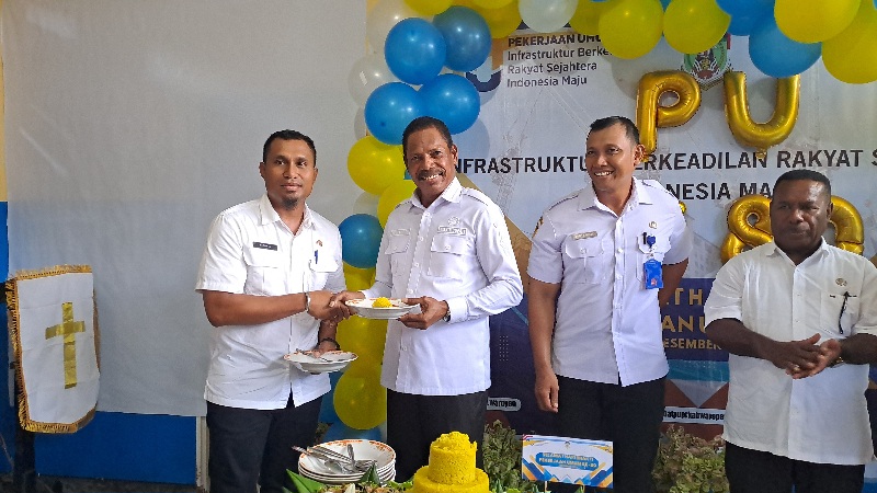 Plt. Kadis PU Michael Rumabar menyerahkan potongan nasi tumpeng kepada Wakil Bupati Waropen, Yowel Boari, sebagai tanda syukur pada perayaan Hari Bhakti PU ke-80. (Ft: […]