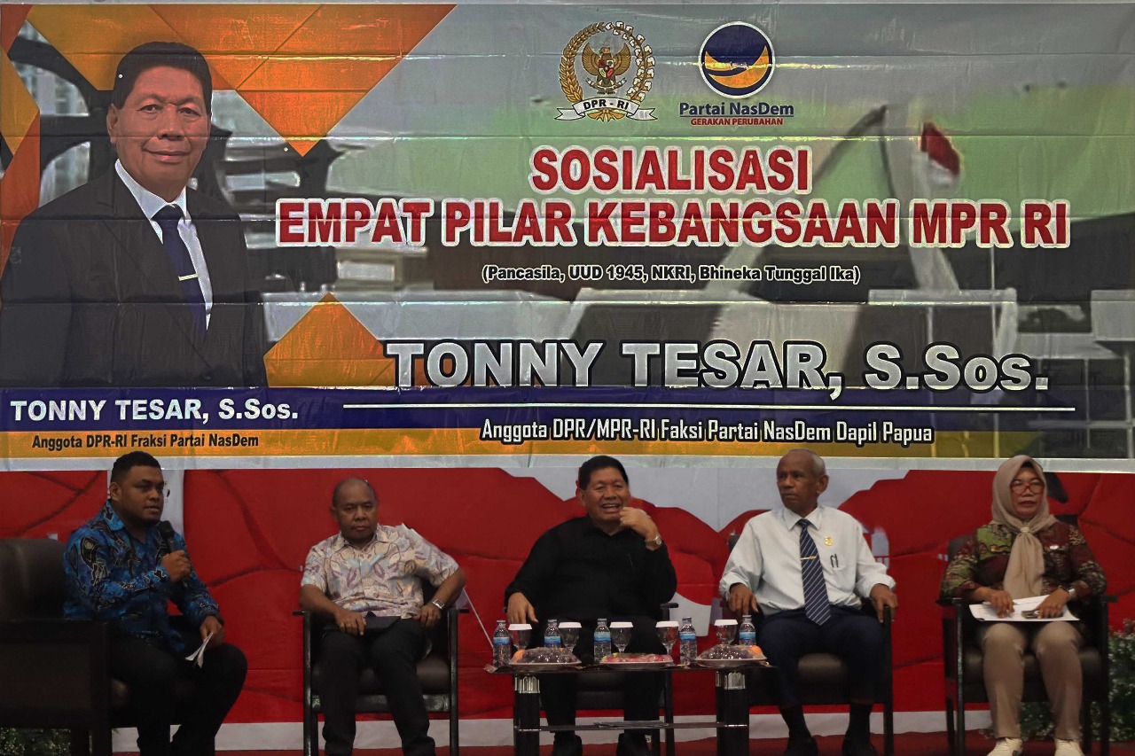 Anggota MPR RI Tonny Tesar, S.Sos. duduk di tengah bersama narasumber lainnya saat memimpin kegiatan Sosialisasi Empat Pilar Kebangsaan di Gedung LPTQ Kotaraja, Jayapura. (Ft: […]