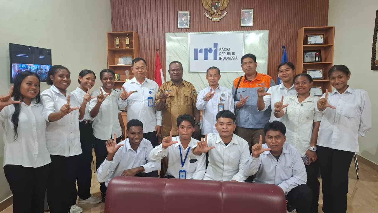 Plt. Kadis Pendidikan Waropen Bernadus Imbiri Motivasi Siswa SMK Negeri Urfas yang Prakerin di RRI Biak