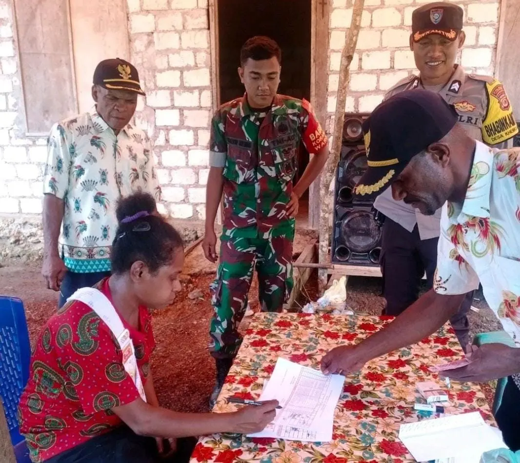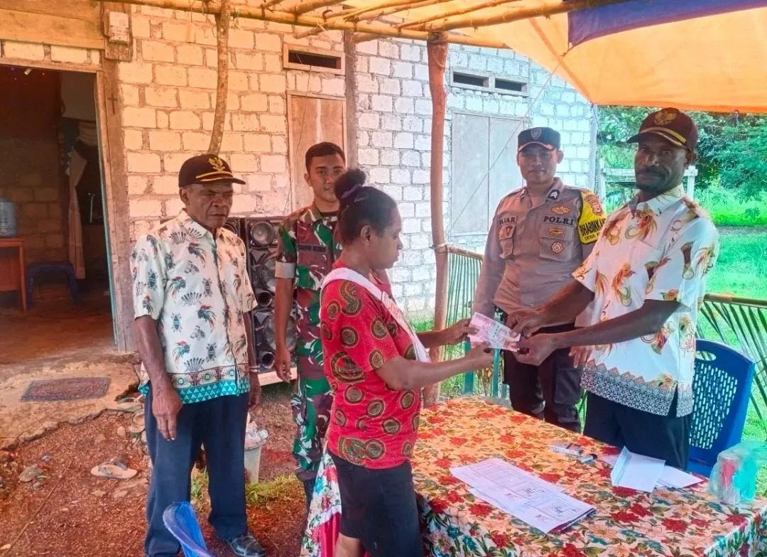 Mepago.co Waropen – Dalam rangka menyalurkan BLT (Bantuan Langsung Tunai) Dana Desa agar tepat sasaran kepada warga yang membutuhkan diwilayah binaannya, Sertu Calvin Kemis Babinsa Koramil 1709-03/Waropen Bawah Kodim 1709/Yawa bersama Bhabinkamtibmas dan Aparatur Kampung menyalurkan BLT DD langsung hingga ke pintu-pintu rumah warganya di Kampung Kemon Jaya Distrik Urei Faisei Kabupaten Waropen, Kamis (25/05/2023).