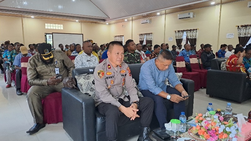 Wakapolres Waropen, Dr. Jerry Koagouw, S.H., M.H, saat menghadiri kegiatan konsultasi publik PBPH di Aula Hotel Elfanso Widuri, Kabupaten Waropen. (Ft: Tamrin/mepago.co)