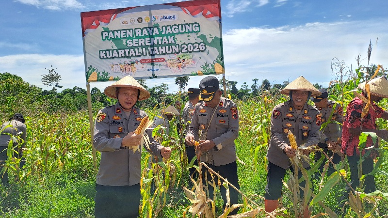 WAROPEN | MEPAGO.CO – Sebagai wujud komitmen Polri dalam mendukung program ketahanan pangan nasional, Wakil Kepala Kepolisian Resor (Wakapolres) Waropen, Kompol Dr. Jerry Koagouw, S.H., M.H., memimpin langsung kegiatan Panen Raya Jagung Serentak Kuartal I Tahun 2026 yang dilaksanakan di Kampung Sawara Jaya, Distrik Waropen Bawah, tepatnya di lahan pertanian Jalan Baru SMA Waren, Kampung Sawara Jaya.